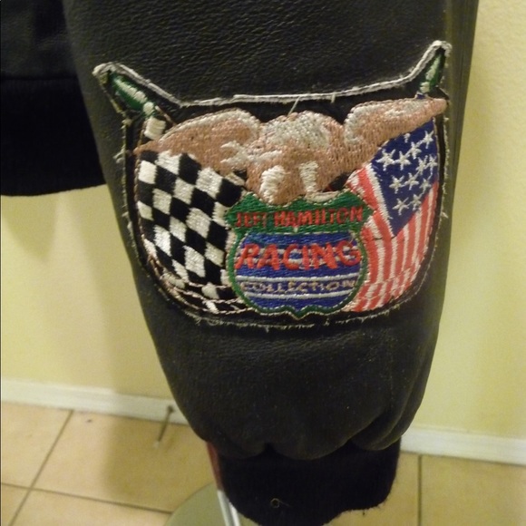 Jeff hamilton nascar jacket medium black leather bomber.