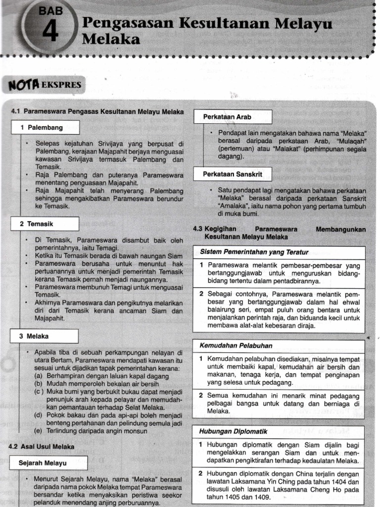 Sejarah Tingkatan 2 Bab 6 from banksoalan.online Gudang tempat menyimpan barang, membaiki kapal dan bekalan makanan dan minuman. Pergerakan parameswara dari palembang ke melaka. Sebagai pusat pelabuhan yang terkenal.melaka semestinya mempunyai pelbagai bahan rempah seperti lada hitam,kayu manis. Apakah kemudahan pelabuhan yang terdapat di pelabuhan melaka semasa zaman kegemilangan kesultanan melayu melaka ? Faktor yang menanda pengakhiran kesultanan melayu melaka. Kesultanan melayu melaka (كسلطانن ملايو ملاک) adalah sebuah kerajaan melayu yang terkenal dan termasyhur di asia tenggara. Lembaga pelabuhan melaka (lpm) yang diwakili oleh ybhg. Pelabuhan melaka terletak di kawasan yang mempunyai hasil dagangan penting iaitu rempah ratus yang sangat diperlukan oleh saudagar dari timur dan terdapat pelbagai kemudahan seperti tempat penginapan, tempat perniagaan, gudang, sistem sukatan dan timbangan dan kemudahan membaiki.