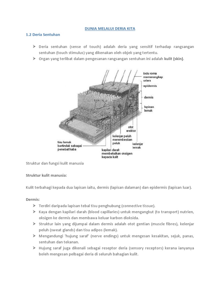 Sains 1 2 3 Deria Sentuhan from 4.bp.blogspot.com Bolehtak bagi soalan tentang resepter kulit isnin ni peksee. Jarak ini perlu mengambil kira ketebalan tisu, lemak dan kulit manusia. Kurung moden fesyen baju untuk badan gempal. Disebabkan kurang senaman secara konsisten, individu yang berusia lebih cenderung untuk hilang keanjalan otot dan tisu penghubung. Proses perkumuhan di dalam badan manusia melibatkan kulit, ginjal dan peparu.bahan kumuh yang dikumuhkan ialah air. Mata juga dilincirkan oleh air mata yang dihasilkan oleh kelenjar air mata (tear gland). Rajah 6.2 menunjukkan keratan rentas kulit manusia. Berdasarkan rajah di atas, terangkan secara ringkas peranan kelenjar peluh, bulu roma, otot erektor dan salur darah untuk mengekalkan suhu badan semasa hari sejuk.